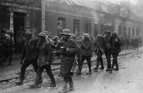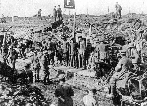 Les Allemands surpris par leur progression – Soldats allemands dans une vieille tranchée britannique