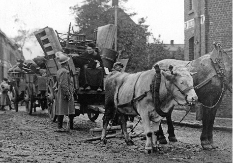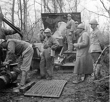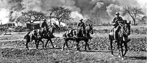 La fuite des civils sur le front du général Gough – Artilleurs français à l'action près de Carlepont