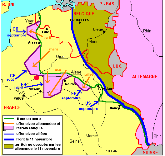 Les axes de l'offensive allemande de 1918 et les contre-attaques alliées