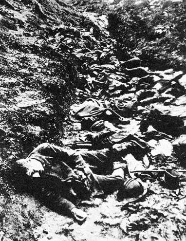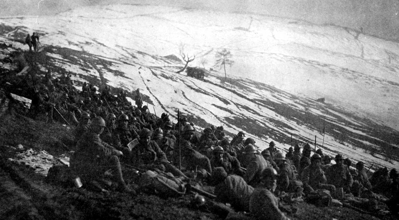 Soldats italiens abandonnant leurs positions – Tranchée italienne détruite par l'artillerie